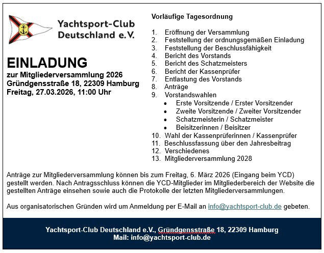 Liebe Mitglieder des Yachtsport-Club Deutschland,